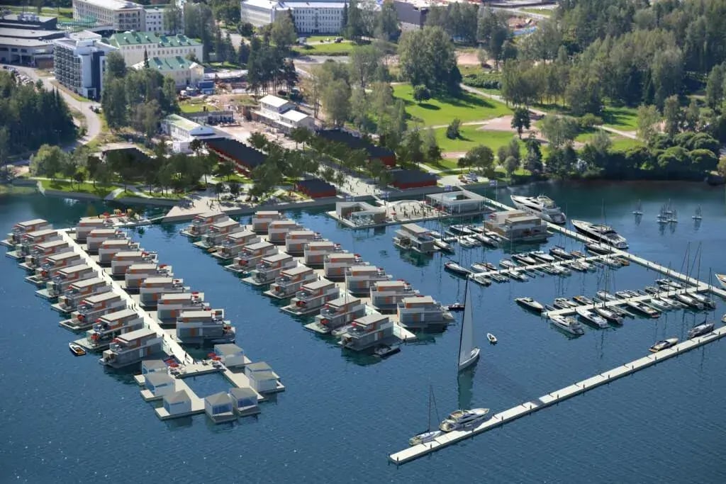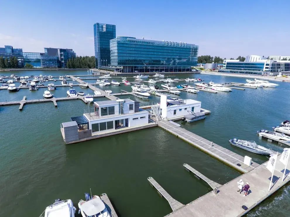 Active marina concept with floating housing, saunas/spas, restaurants and other floating facilities, Bluet®