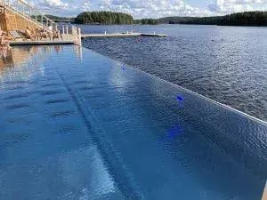 Bluet delivered three pools to this brand-new attraction, which opened in May 2019. The main heated pool is a 16,5 m x 4,5 m stainless steel structure infinity pool. Two other pools are a smaller, 2,6 m x 3,5 m hot tub outside, and a jacuzzi with a diameter of 3 meters inside the spa. The outdoor pools were manufactured by High Metal in Vantaa.